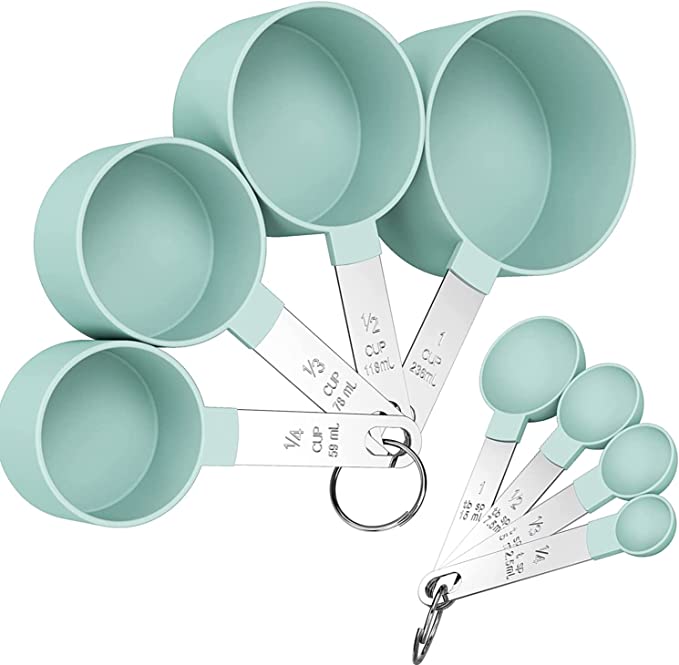 + Free ShippingJuego de tazas y cucharas medidoras de 8 piezas, con mango de acero inoxidable. Usual para ingredientes secos y líquidos.