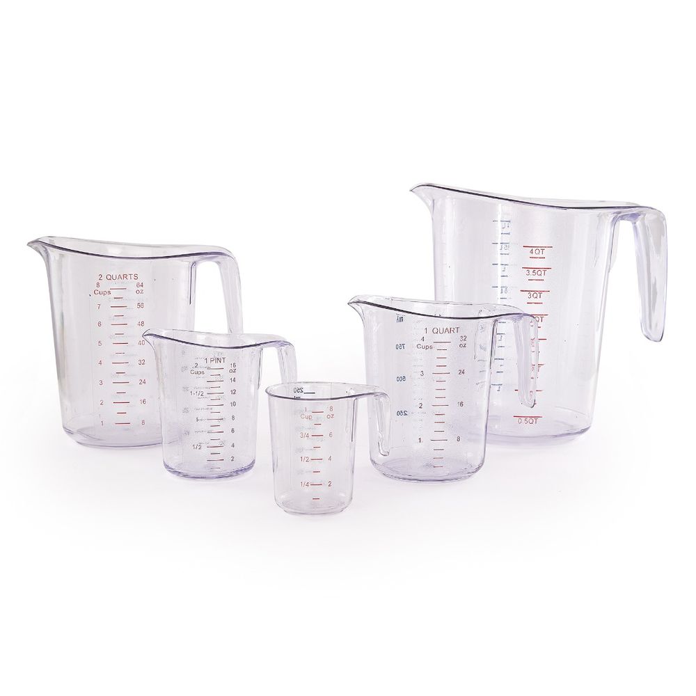 + Free ShippingJuego de 5 jarras medidoras, cada una de distinto tamaño, hechas de policarbonato.